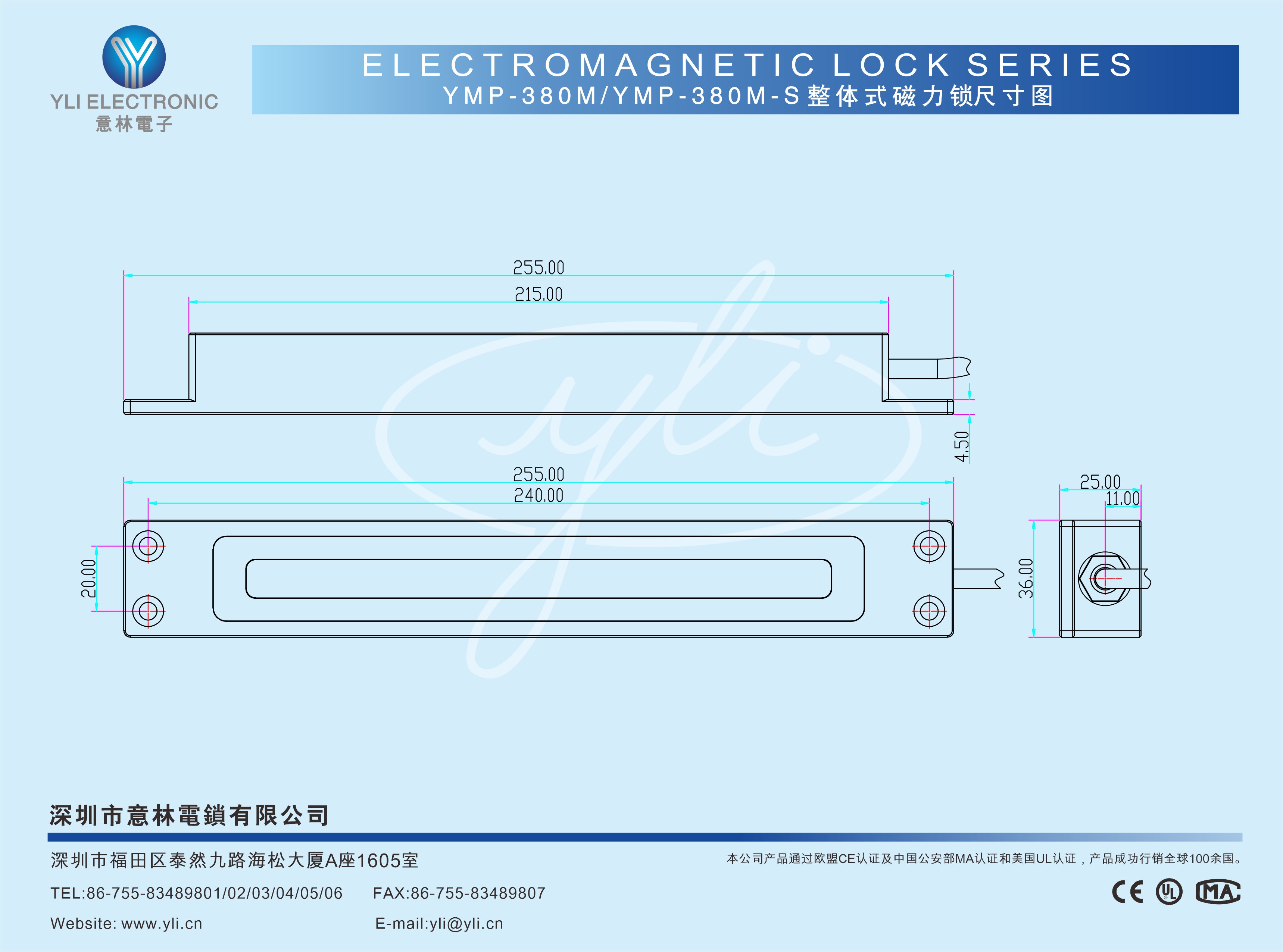 | 信号输出 | 锁状态信号NO、COM接点(YMP-380M-S) |