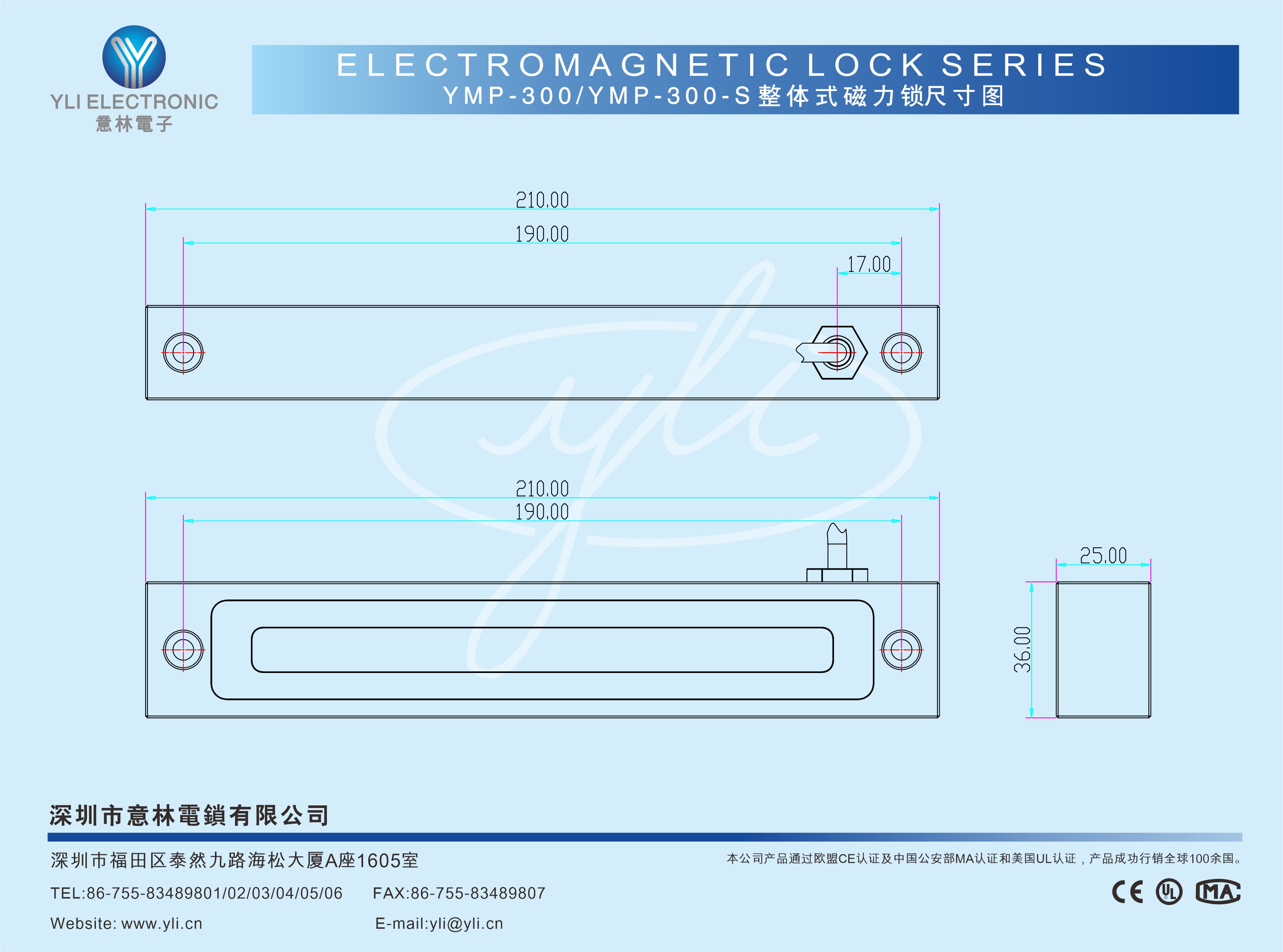 | 信号输出 | 锁状态信号NO、COM接点(YMP-300-S) |