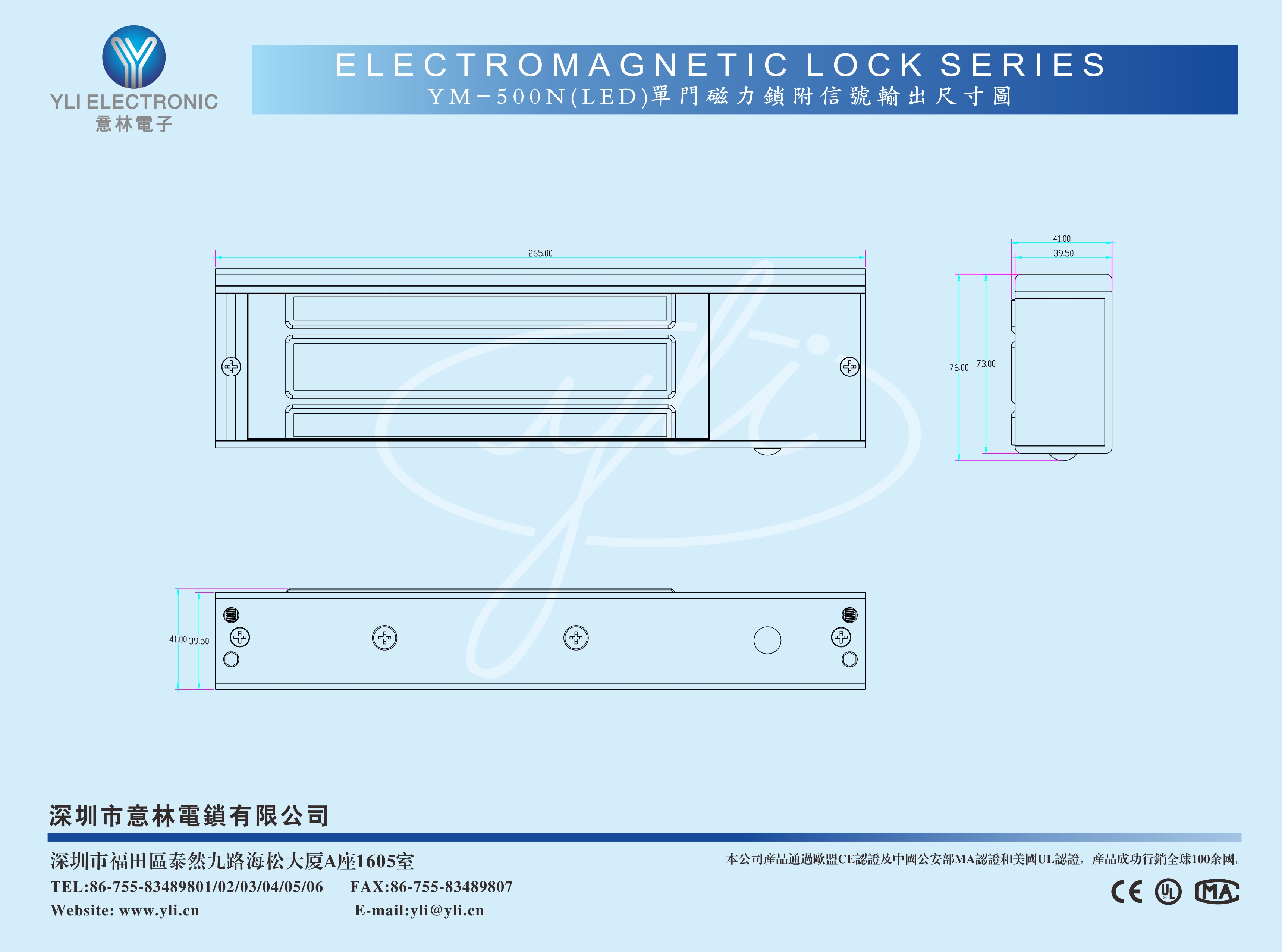 | 锁体尺寸 | 长265x宽73x厚41(mm) |