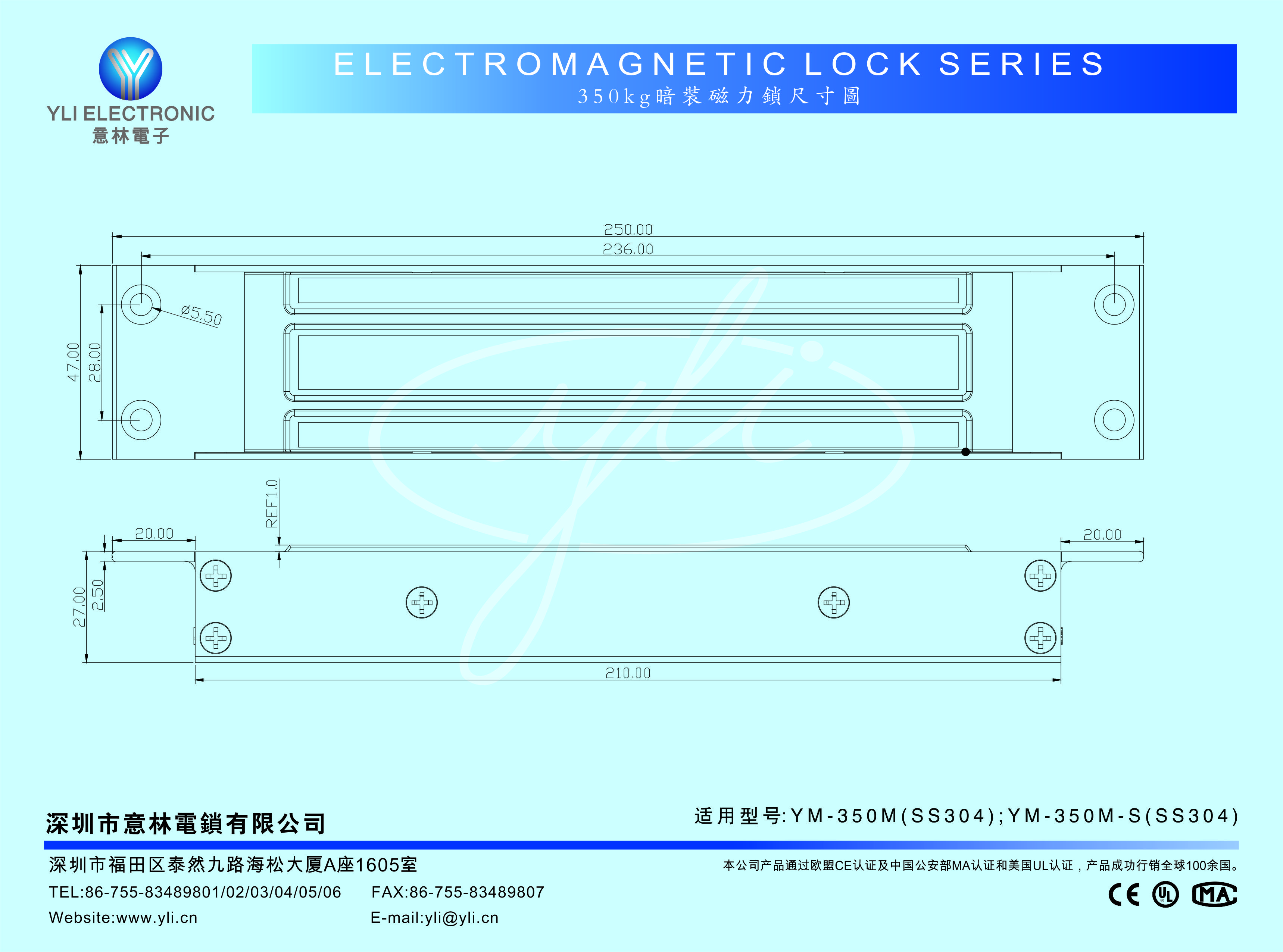 | 锁体尺寸 | 长250x宽47x高27(mm) |