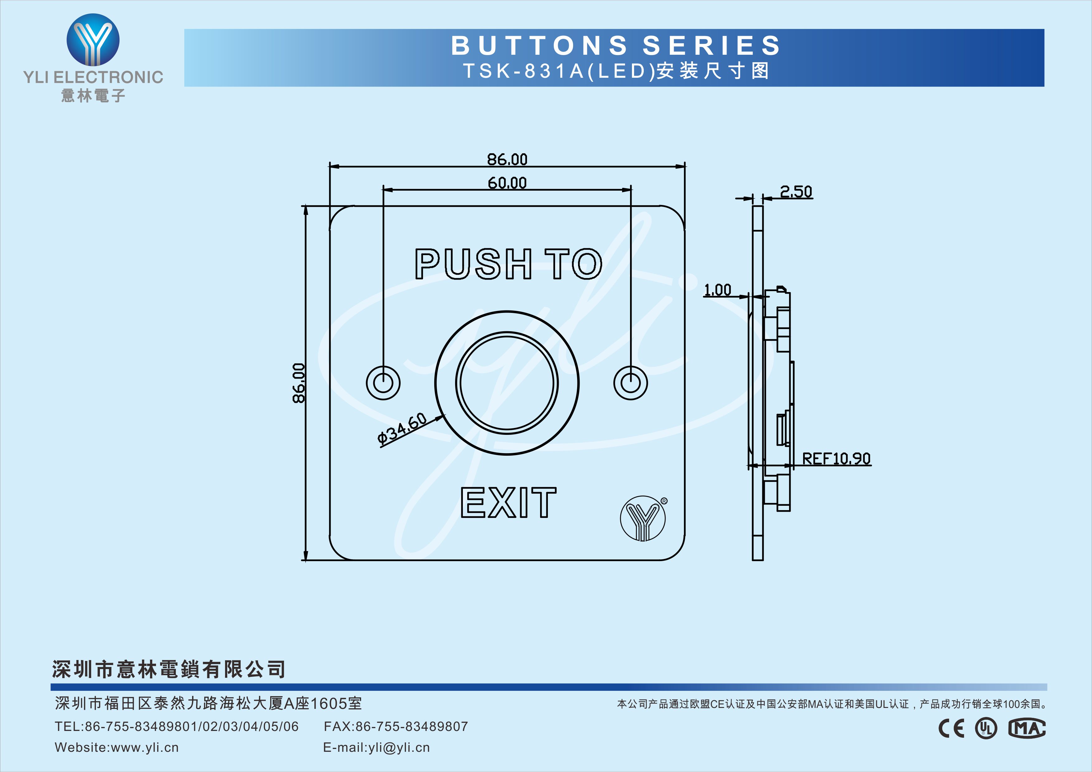 | 开关尺寸 | 长86x宽86x厚10.9(mm) |