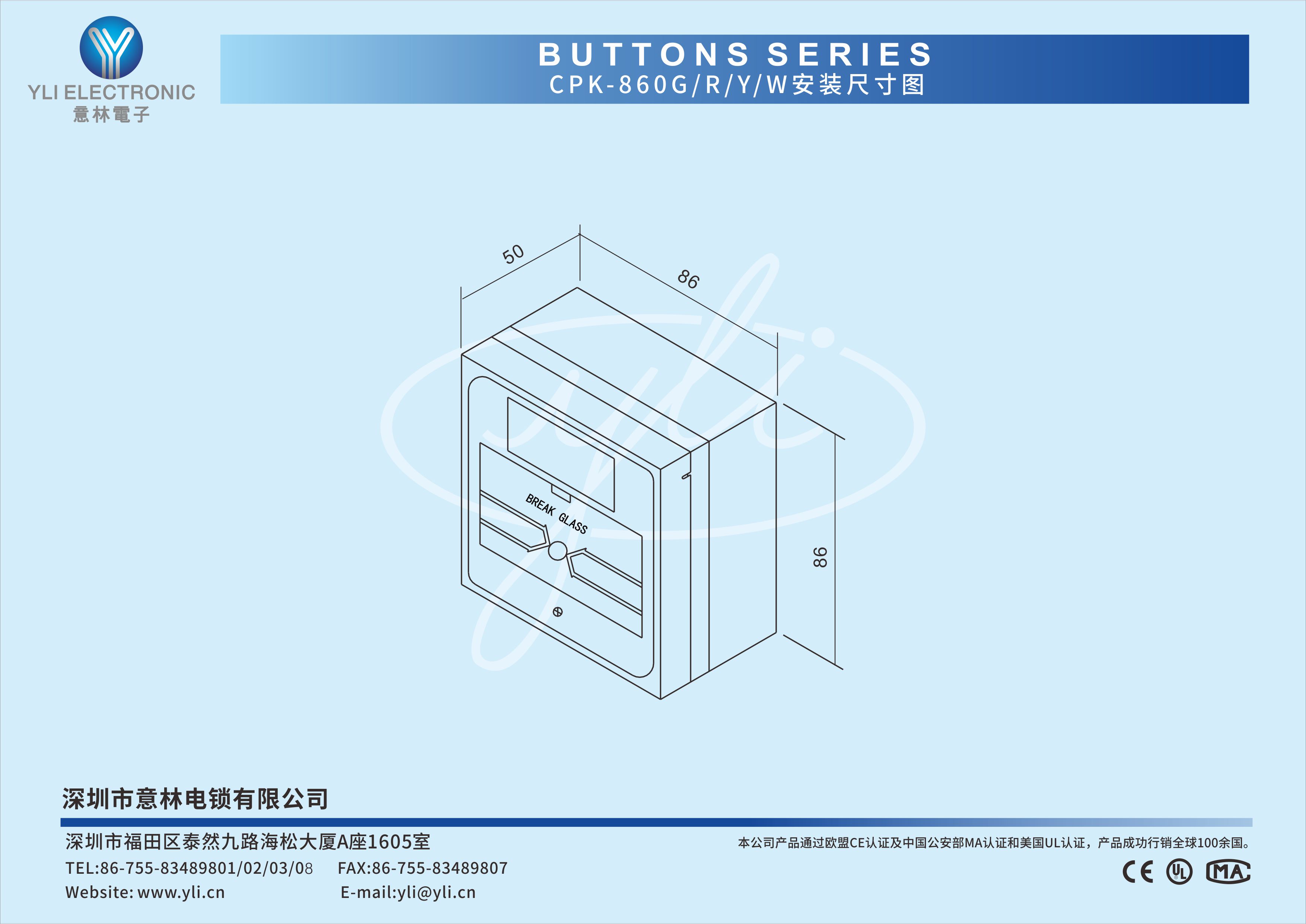 紧急出口报警开门掣,紧急情况下,打破玻璃实现开门。本产品选用ABS防火材料,符合消防安全要求,磨砂面板设计。适用于:安全门、逃生门、安全系统等消防应急通道、紧急出口。